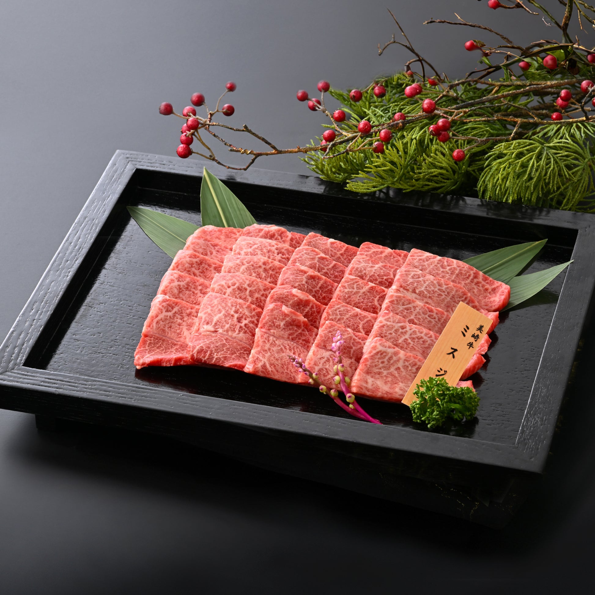 牛の肩甲骨の内側に隠れた、一頭からわずかしか取れない希少部位「ミスジ」。 中心に一本の筋が入っているのが特徴で、牛肉の全部位の中でも特に動きの少ない筋肉のため、驚くほど柔らかい食感をお楽しみいただけます。 赤身の美味しさをしっかりと感じたい、そんな食通の方にこそ贈りたい逸品です。